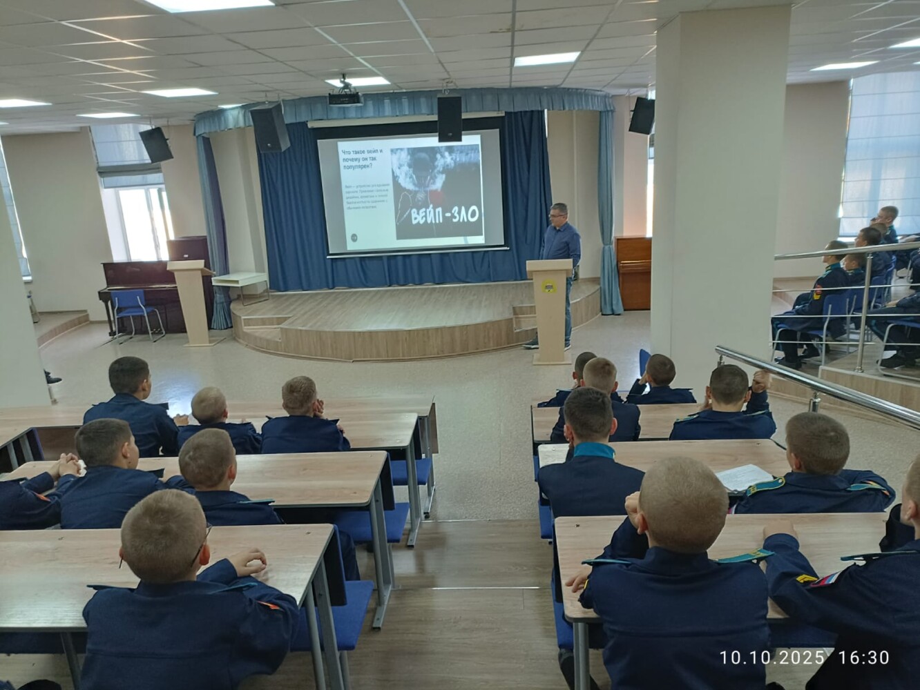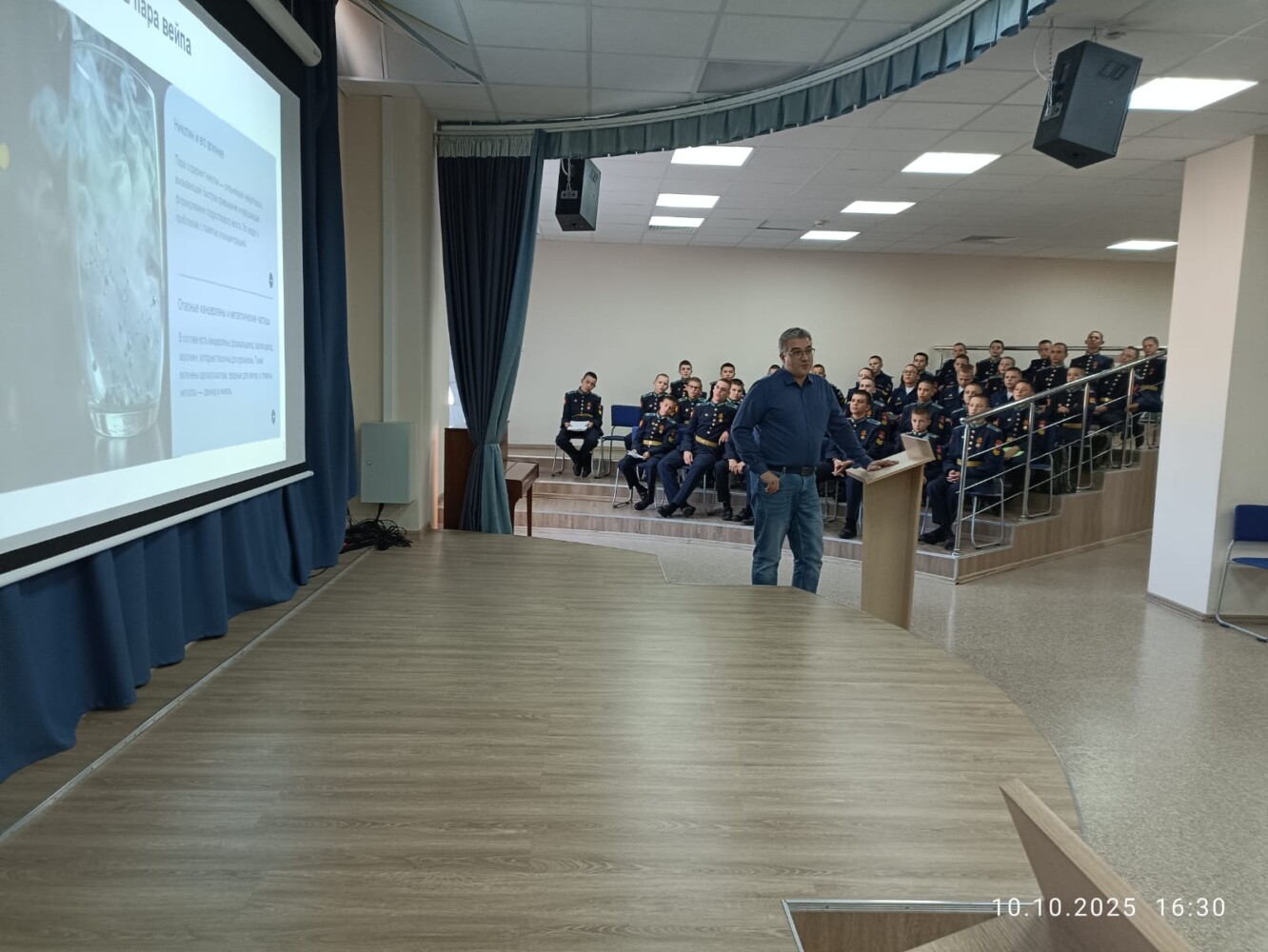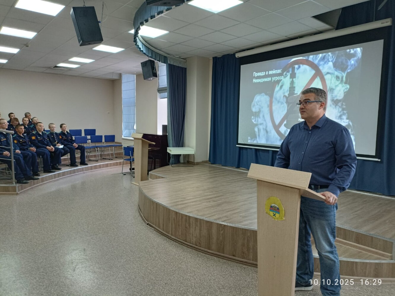 10 октября в центре кадетского творчества кадеты 7 учебного курса на профилактической беседе «Опасность курения в подростковом возрасте» встречались со старшим преподавателем кафедры судебной медицины и правоведения ФГ БОУ ВО «Оренбургского государственного медицинского университета» Александром Борисовичем Прокофьевым, цель которого была сформировать у кадет представление об отрицательном влиянии курения на организм. Дать достоверную информацию ребятам о причинах и последствиях табакокурения.Развивать навыки уверенного отказа от предложений попробовать курить.
