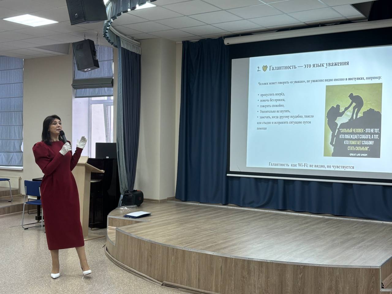 15 ноября в центре кадетского творчества прошла очередная встреча кадет 7 учебного курса с директором Представительства Ассоциации Культуры и Этикета в Оренбуржье, педагогом по этикету и дипломатическому протоколу Викторией Александровной Калашниковой. На встрече ребята познакомились с правилами поведение в высшем обществе, которое основано на уважении, сдержанности и такте, а также с ключевыми принципами соблюдения правил этикета за столом и при приветствиях, поддержания достойного внешнего вида, вежливого общения без сплетен и осуждения, умения вести себя в общественных местах и за столом.