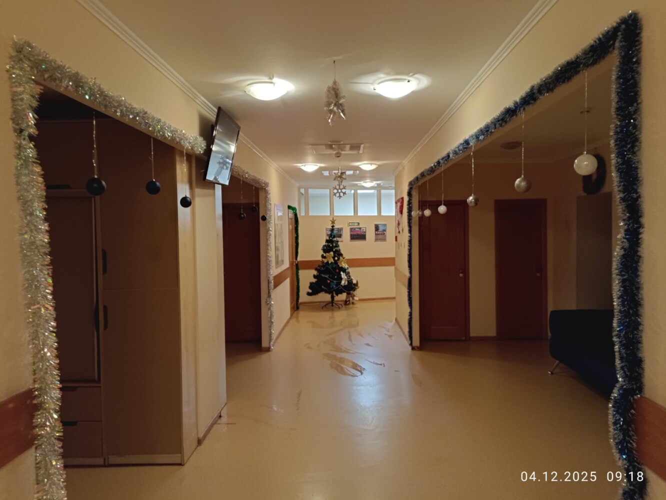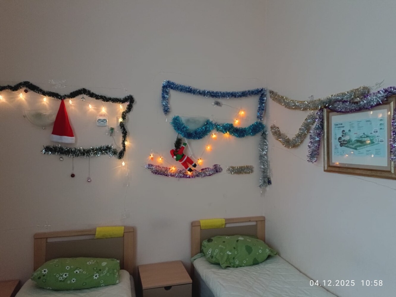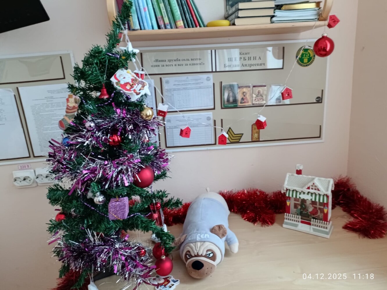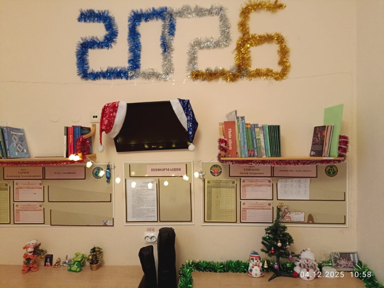 За окном уже который день зима, но снега пока не видно. Но НОВЫЙ ГОД ни кто не отменял и поэтому в общежитии 7 учебного курса в свободное от занятий время кипит новогодняя суета. Практически в каждой комнате появляются ёлочки, открытки со сказочными персонажами, игрушки, на стенах, полках вывешиваются безопасные гирлянды, коридоры и окна украшаются новогодней мишурой и снежинками. А мастера «карандаша и кисточки» в своих комнатах рисуют будующий шедевр — Новогоднюю газету.