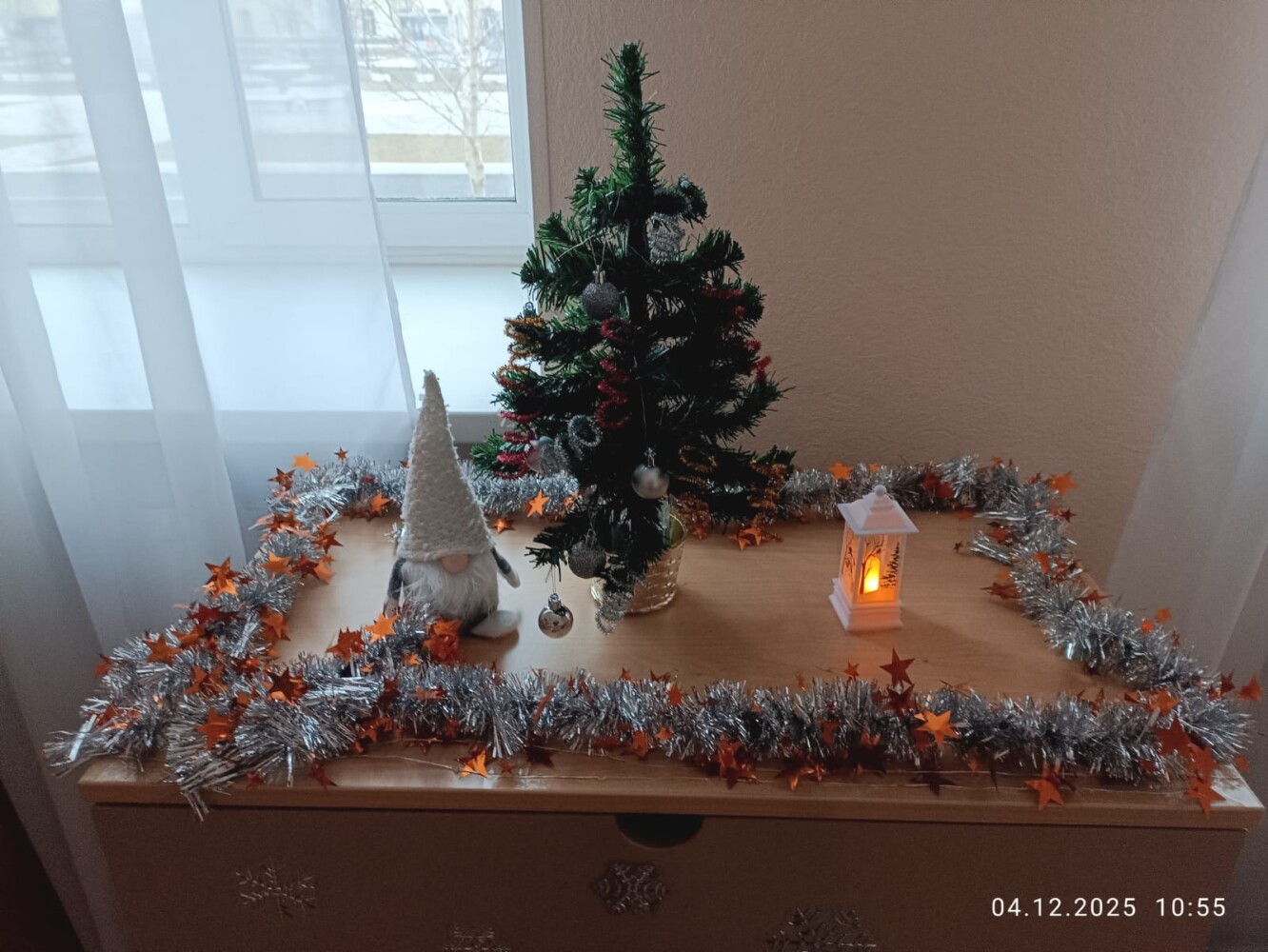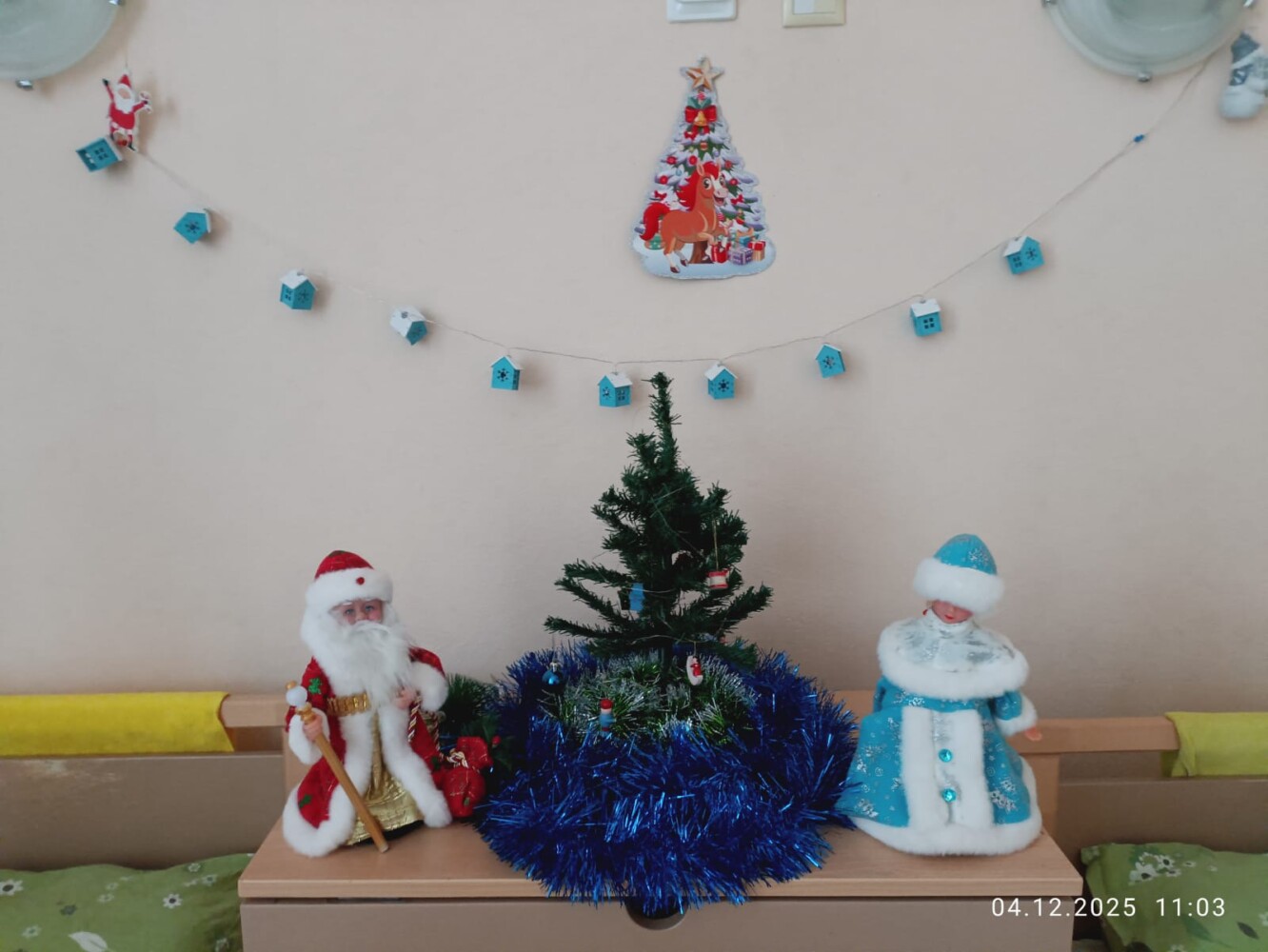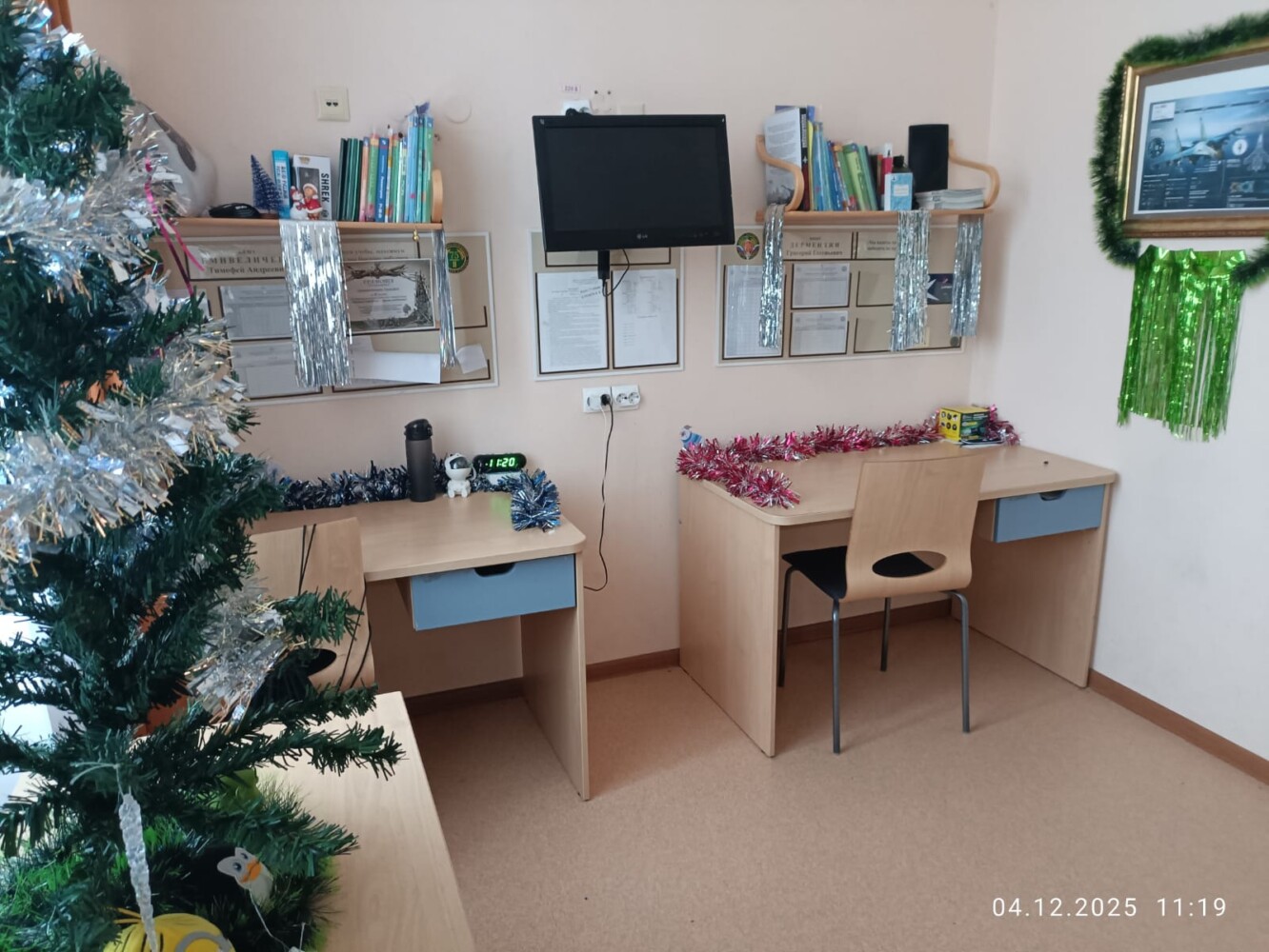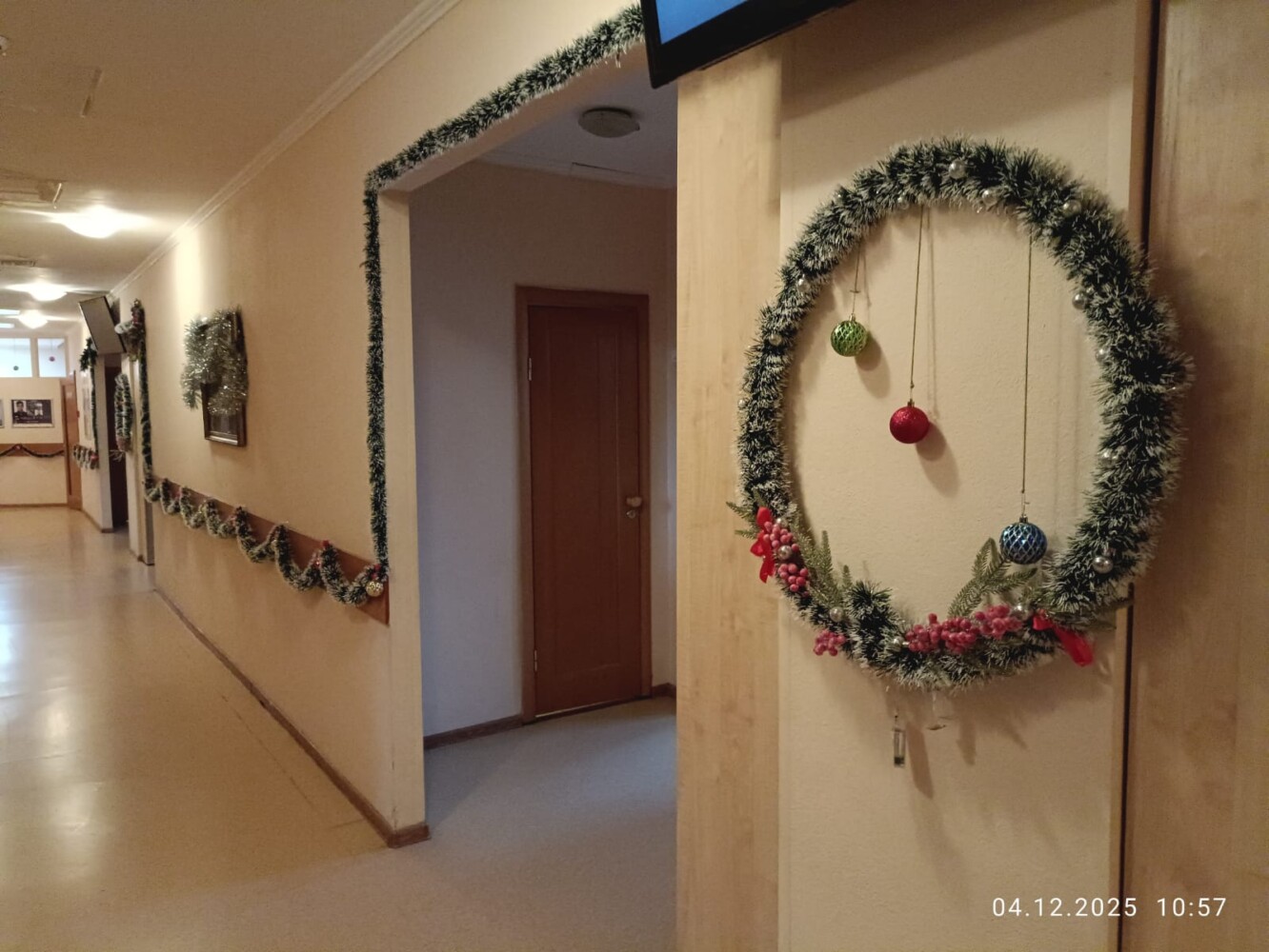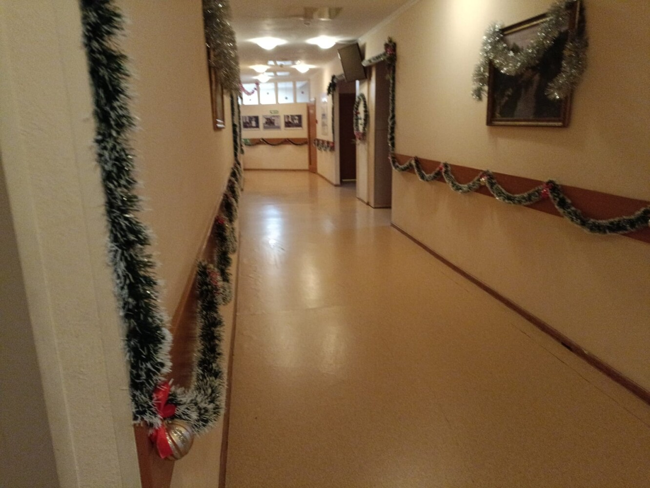 За окном уже который день зима, но снега пока не видно. Но НОВЫЙ ГОД ни кто не отменял и поэтому в общежитии 7 учебного курса в свободное от занятий время кипит новогодняя суета. Практически в каждой комнате появляются ёлочки, открытки со сказочными персонажами, игрушки, на стенах, полках вывешиваются безопасные гирлянды, коридоры и окна украшаются новогодней мишурой и снежинками. А мастера «карандаша и кисточки» в своих комнатах рисуют будующий шедевр — Новогоднюю газету.