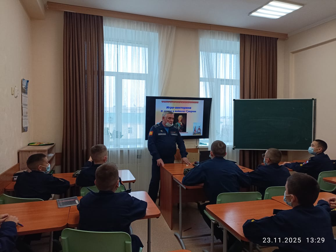 23 ноября накануне 295-летнего юбилея со дня рождения выдающегося русского полководца Александра Васильевича Суворова, в расположении 7 учебного курса прошла игра -викторина «О жизни и подвигах А.В. Суворова», которая состоит из четырёх тематических блоков, охватывающих ключевые аспекты жизни и деятельности полководца: факты его биографии, сражений, знаменитые высказывания и память о нем. Его имя неразрывно связано с эпохой триумфов русской армии XVIII века. Не потерпев ни единого поражения в более чем шестидесяти сражениях, Суворов справедливо считается олицетворением военной доблести и гениального стратега. Читать далее