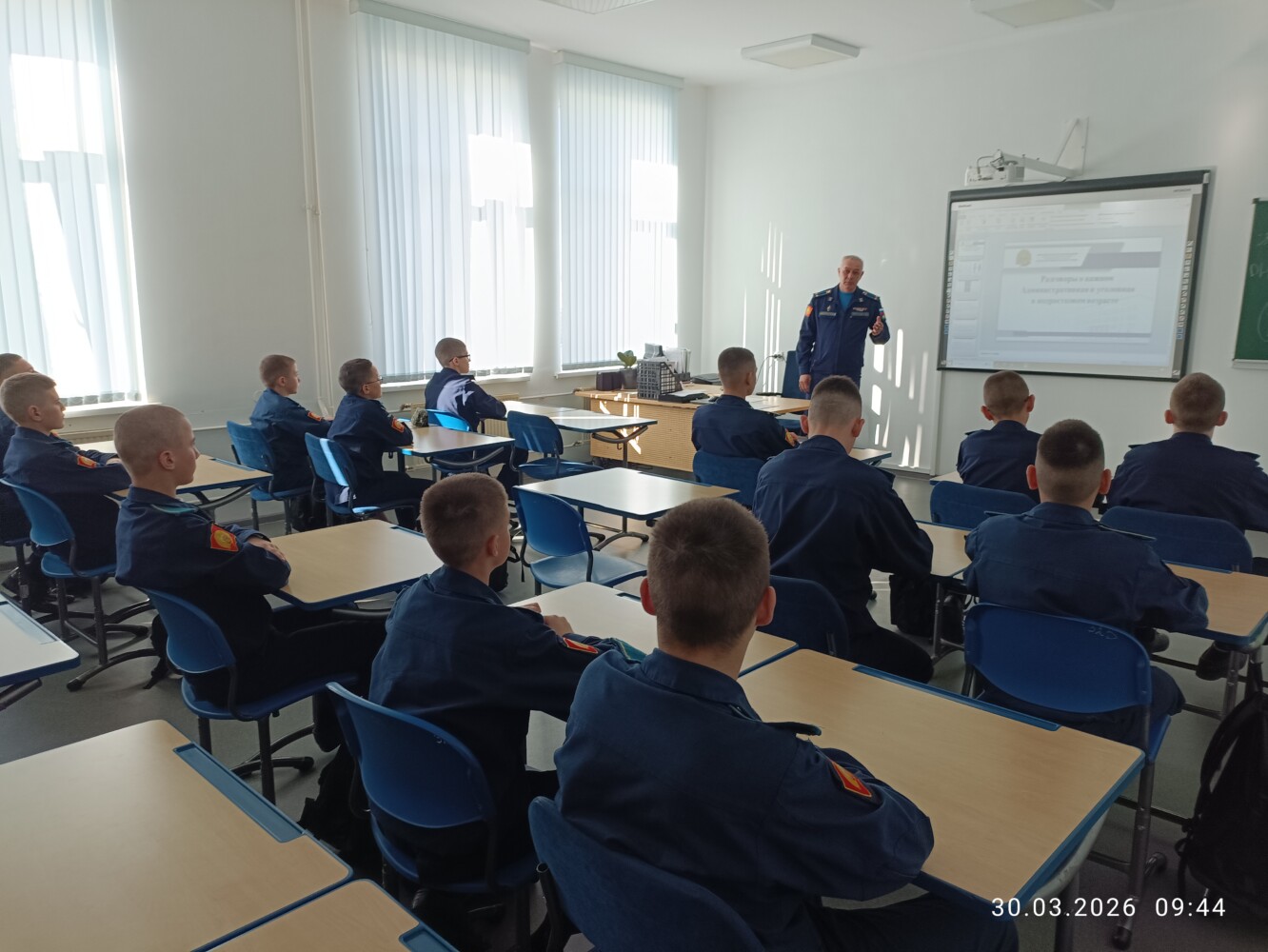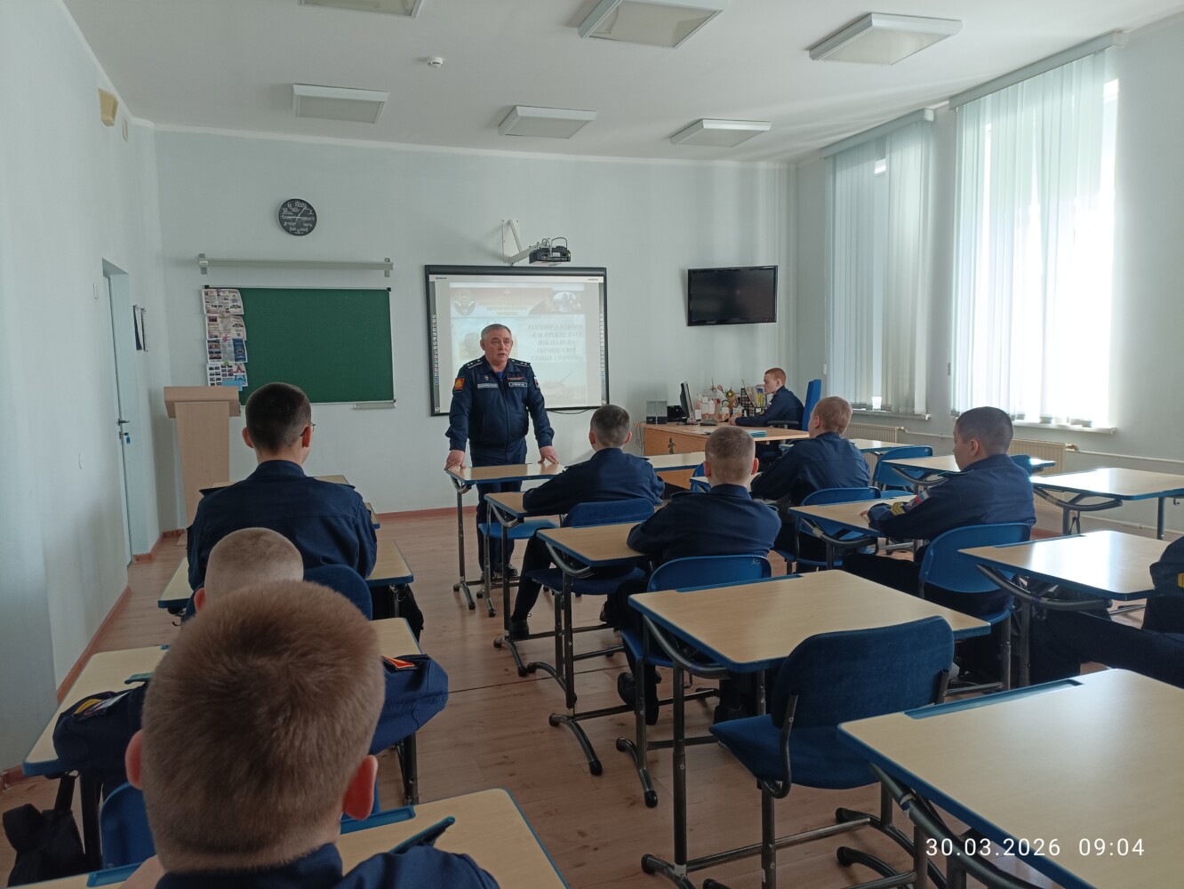 30 марта кадеты 7 учебного курса в учебных классах главного учебного корпуса «Разговаривали о важном». Педагоги в каждом взводе говорили каждый на свою тему;