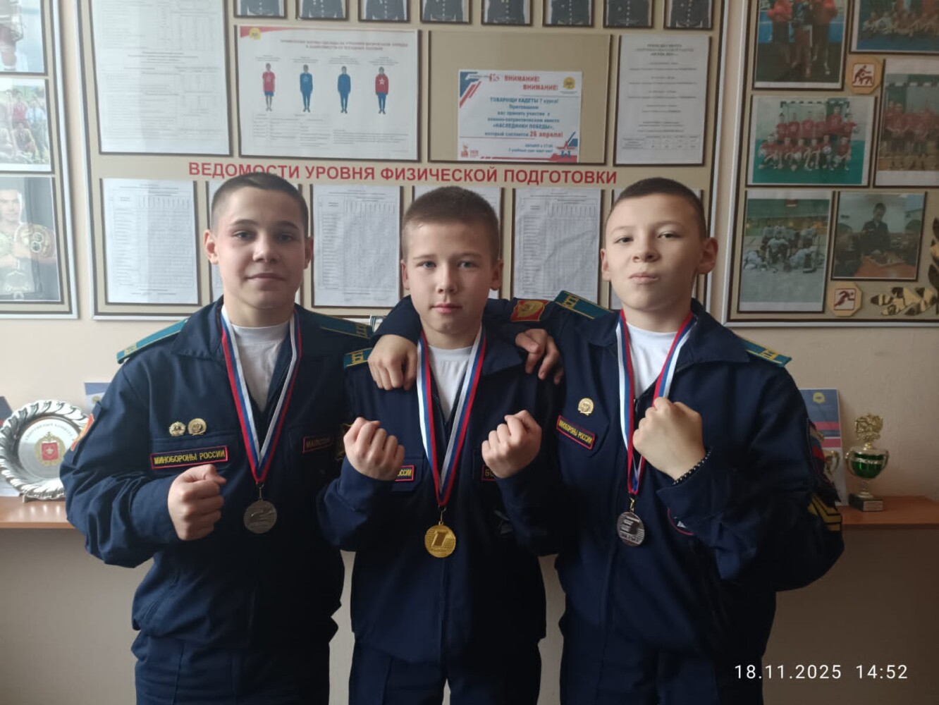 18 ноября в СК «Олимпийский» прошло первенство и чемпионат Оренбургской области, посвященные Всероссийскому дню самбо. 134 спортсмена из 15 муниципалитетов области боролись за победу и за возможность поучаствовать в первенстве Приволжского федерального округа. Наше училище представляли кадеты 7 учебного курса, которые в честной борьбе завоевали призовые места: