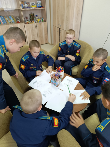 Педагоги-психологи: Щиенко Ю.П. и Найденова И.А., совместно к кадетами 7 и 4 учебного курса провели развивающее занятие, направленное на создание благоприятной среды для адаптации и развития кадет младших курсов, а также воспитание лидерских качеств и ответственности у старших. Говорили о благополучии, психологической стабильности, и как достичь уверенности в своих силах. Становление личности кадета происходит в общении.