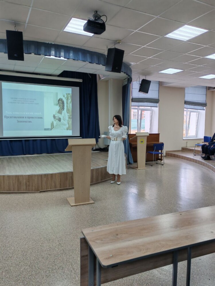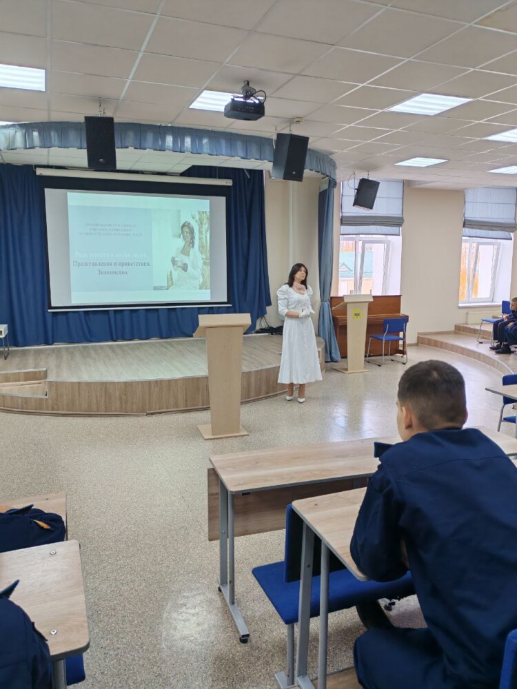 18 октября в центре кадетского творчества возобновились встречи кадет 7 учебного курса с директором Представительства Ассоциации Культуры и Этикета в Оренбуржье, педагогом по этикету и дипломатическому протоколу Викторией Александровной Калашниковой. На встрече ребята познакомились с основными правилами и порядком действий при знакомстве, а также роль этикета в обществе и человеческом общении.