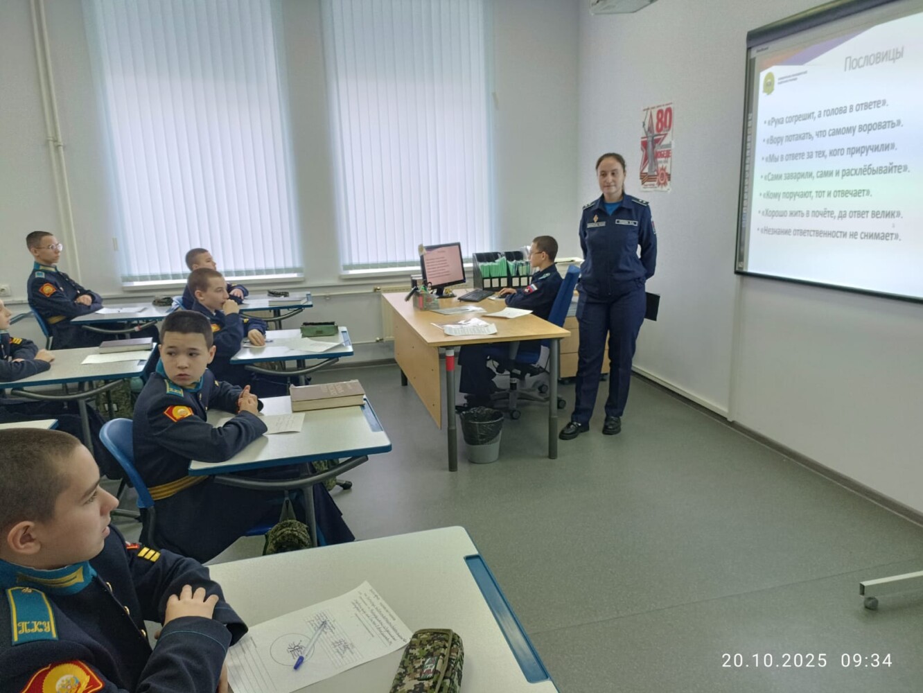 20 октября кадеты 7 учебного курса в учебных классах главного учебного корпуса «Разговаривали о важном». Педагоги в каждом взводе говорили каждый на свою тему;