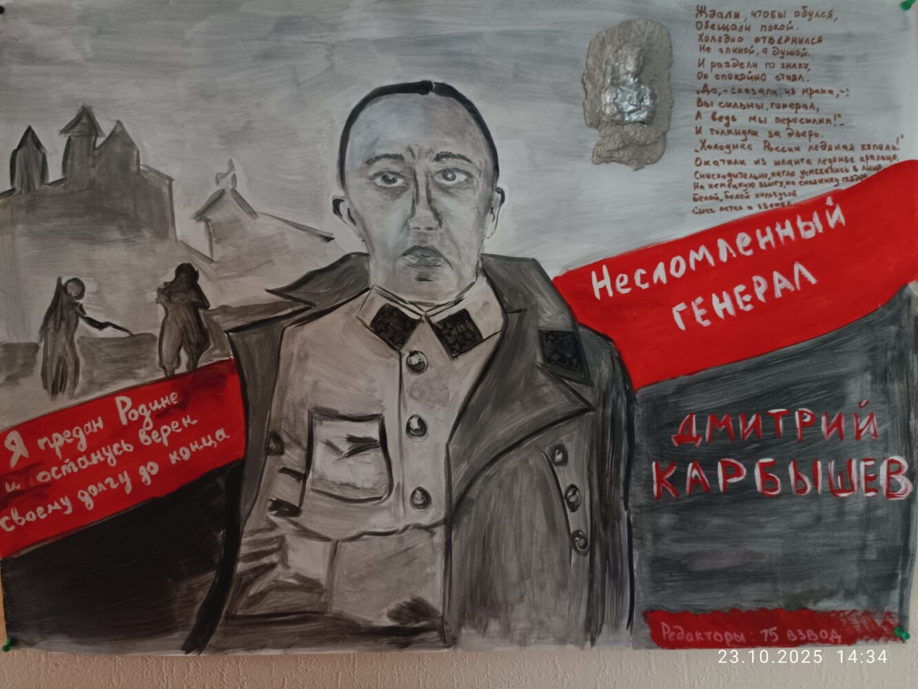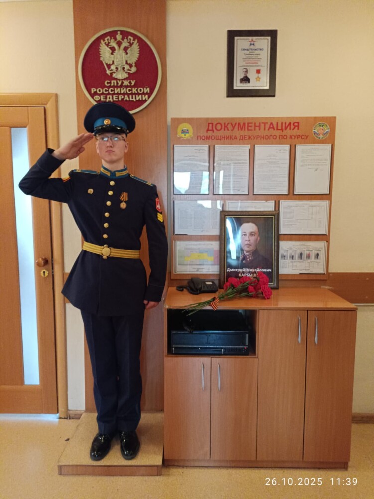 На аллее Героев в парадном строю застыли взвода 7 учебного курса. У стелы героя занял пост почетный караул. В этот день «карбышевцы» читали стихи о легендарном генерале, отдавая дань памяти прославленному герою, чья жизнь и поступки стали примером для кадет курса, чьи цитаты для многих ребят стали правилами повседневной жизни, мы заверяем всех – «Его подвиг будет жить в наших сердцах вечно»!