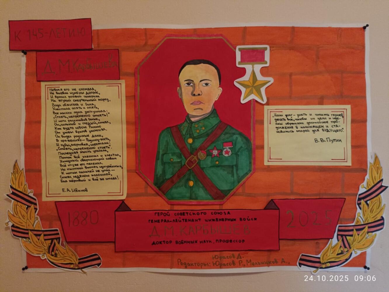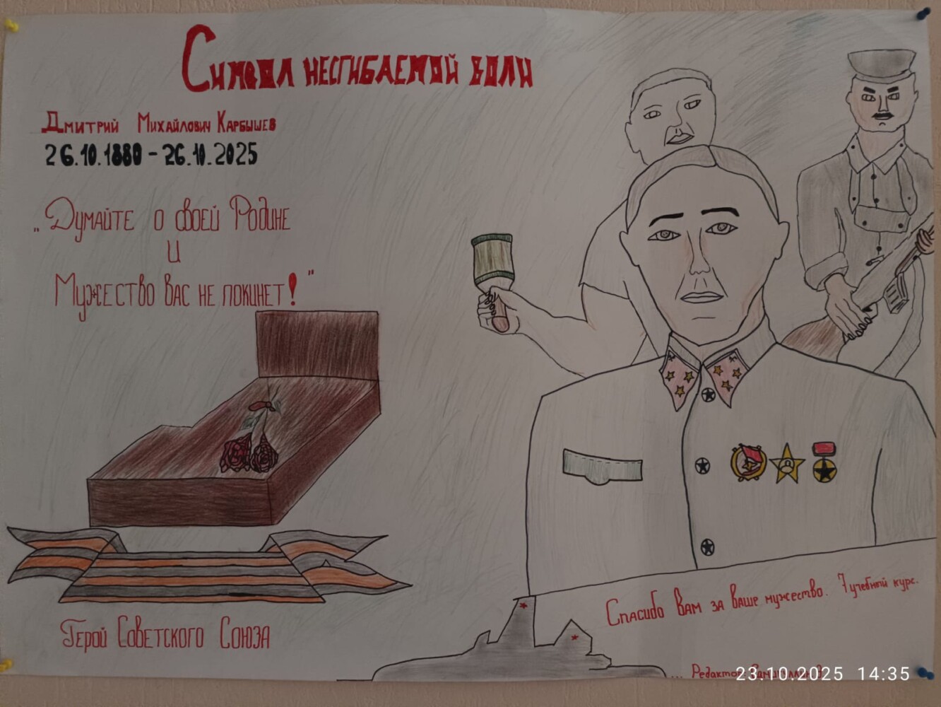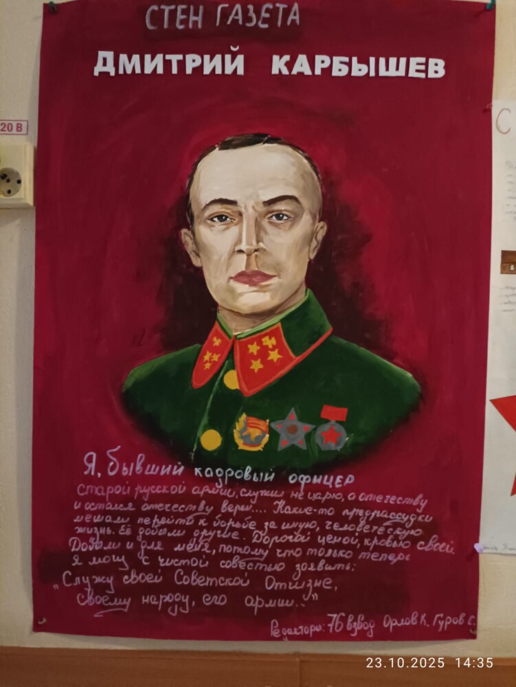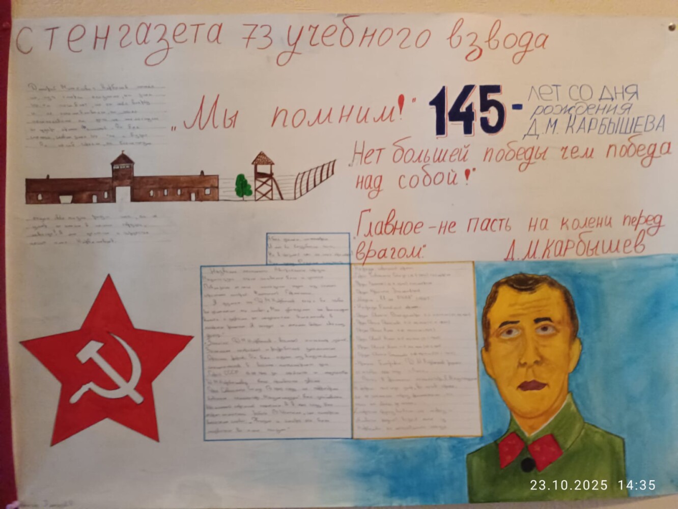 26 октября 7 учебный курс отметил 145 годовщину со дня рождения генерал-лейтенанта инженерных войск, фортификатора, доктора военных наук и профессора Военной академии Генштаба РККА, Героя советского Союза Дмитрия Михайловича Карбышева.