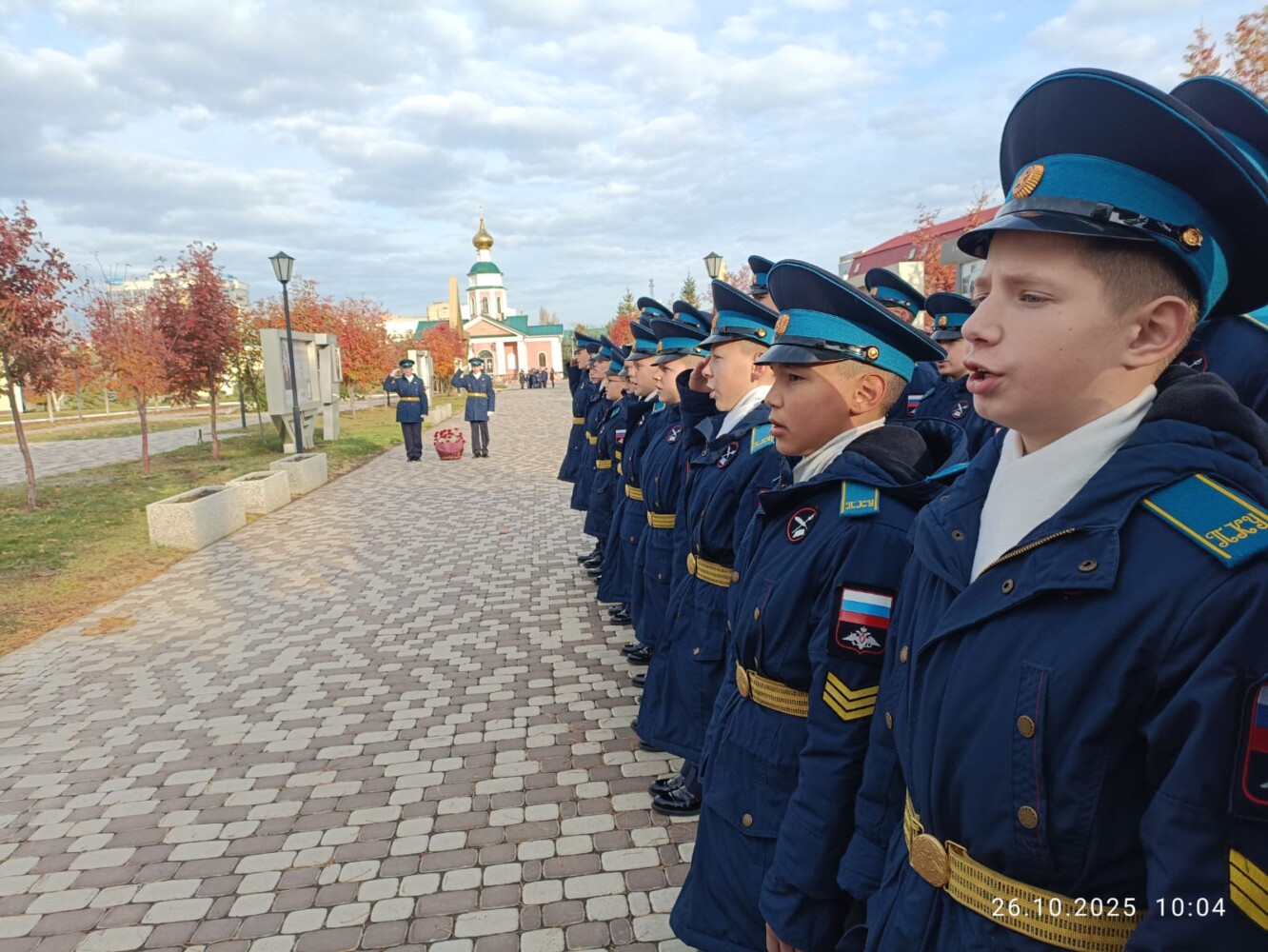После выступления чтецов под мелодию из кинофильма « Офицеры» лучшие кадеты курса возложили корзину цветов к экспозиции с изображением героя. Митинг завершился торжественным прохождением личного состава 7 учебного курса.