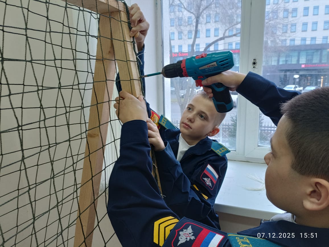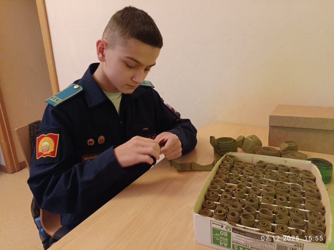 Несколько недель назад кадеты 7 учебного курса приступили к плетению маскировочных сетей, ведь на данный момент это самая востребованная деталь маскировки, а до этого ребята писали письма, плели костюмы «Кикимора», вязали браслеты, делали свечи и амулеты для нужд СВО. Это дело не простое, но у кадет 7 курса уже есть небольшой опыт . Первыми эстафету подхватили кадеты 71 взвода. Для начала приготовили необходимый материал, установили специальные рамки из реек, нарезали ленты определённой длинны и ширины (трех цветов), для удобства скрутили их в рулоны и под чутким руководством воспитателя принялись по установленной схеме вязать. Закипела работа! Пока потихоньку, но сами! Мы стараемся! Мы ПОБЕДИМ!