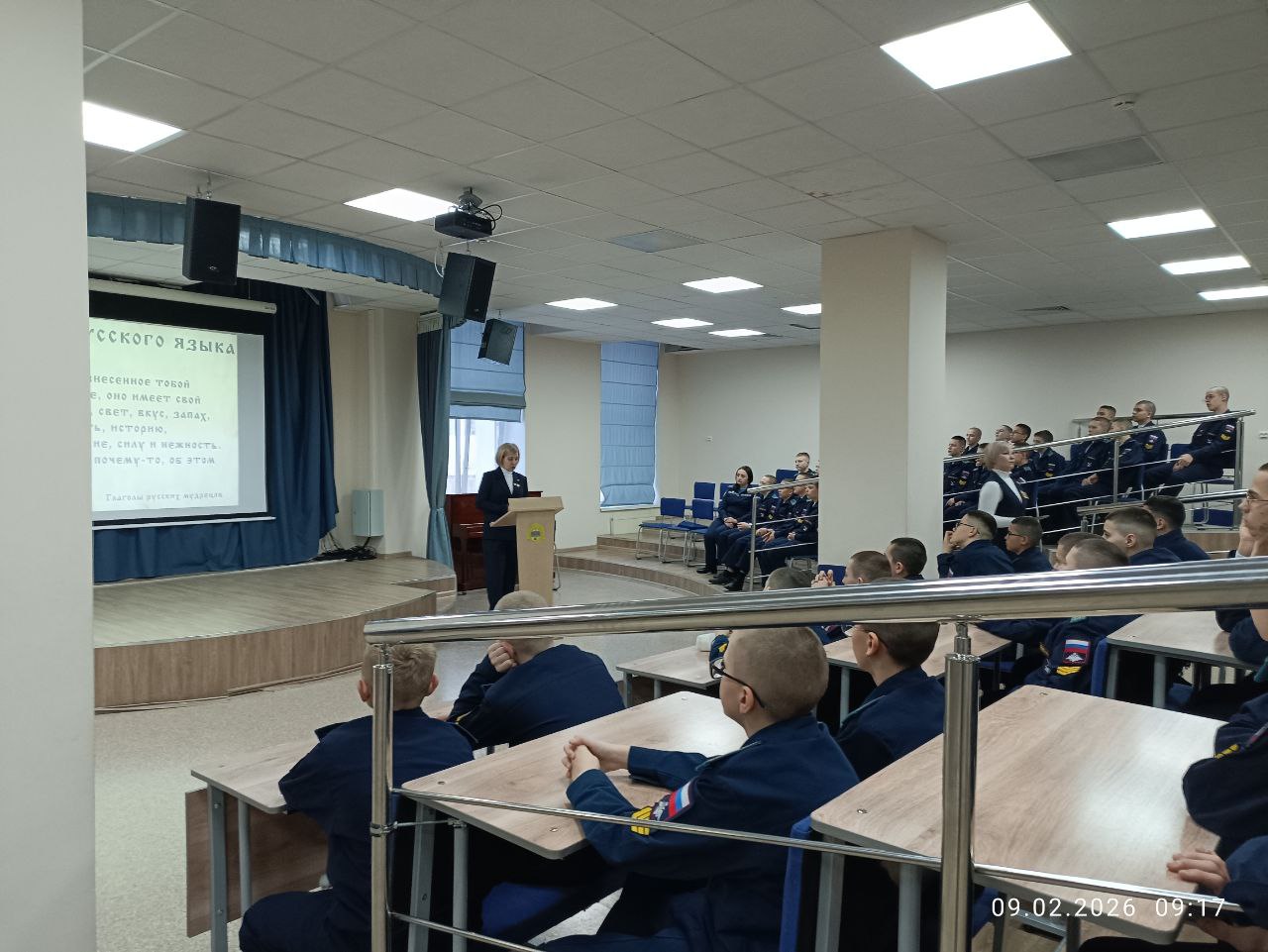 9 февраля кадеты 7 учебного курса в центре кадетского творчества «Разговаривали о важном» с педагоги кафедры русского языка и литературы (Левковской Л.И., Абрашиковой Н.Н., Щербаковой О.В. и Саньковой Н.В.) на тему: «Слово за слово. О языке и не только…». Говорили о важности сохранения русского языка; отражение его изменений в условиях развития цифровых технологий; объяснение пользы взаимодействия русского языка и цифровых технологий; объяснение важности изучения языковых норм и правил, а также что языковые средства представляют собой инструменты для выражения мыслей. В цифровую эпоху классический языковой инструментарий расширяется за счет новых деталей (эмодзи, сленг). Язык неизбежно адаптируется к новым явлениям, и носители языка могут экспериментировать, расширяя границы владения языком в изменившихся условиях. Язык функционирует в обществе, и процесс взаимного влияния окружающей среды, языка и носителей этого языка создает уникальную языковую экосистему.