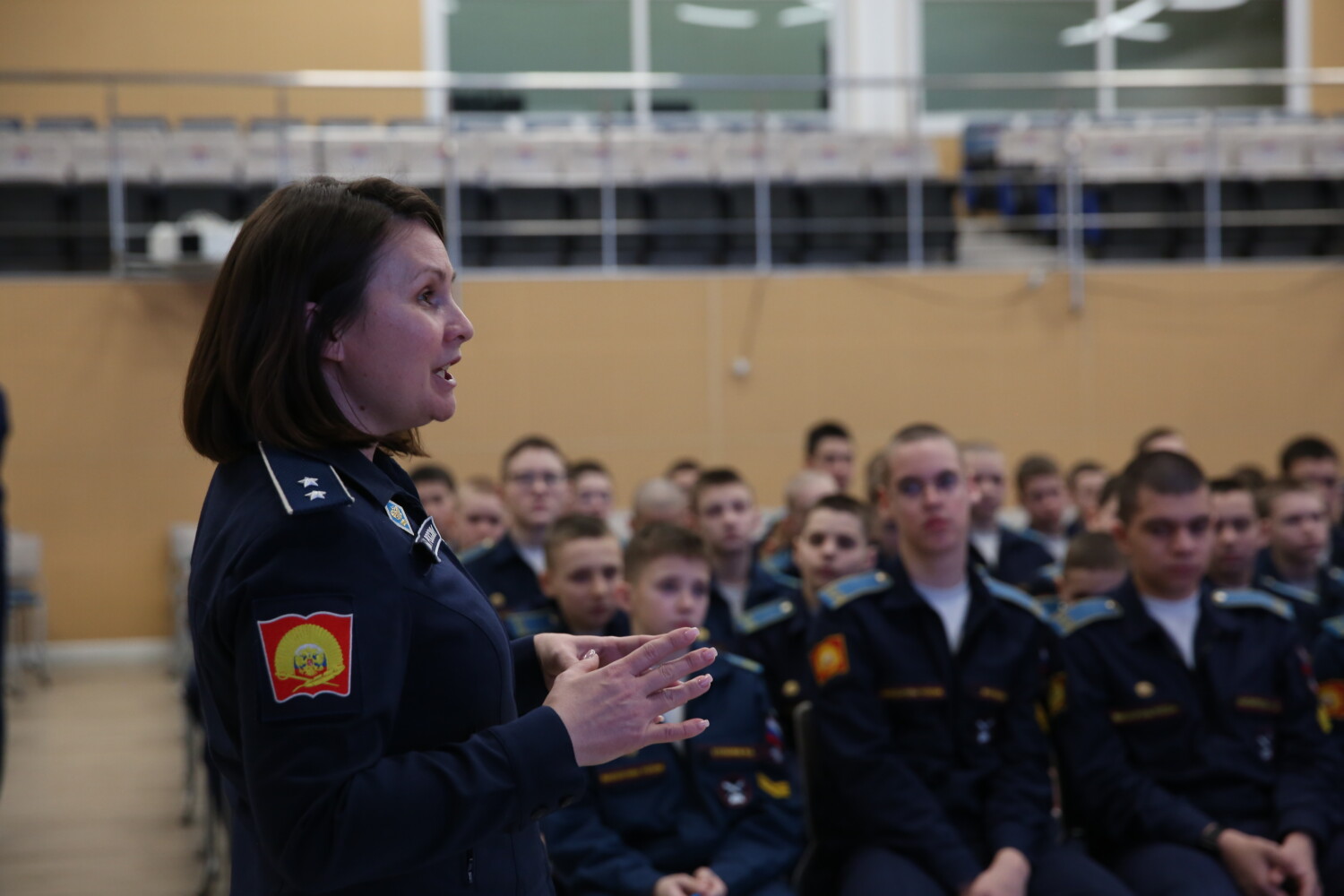 16 февраля кадеты 7 учебного курса в спортивно-концертном зале «Разговаривали о важном». «А по-другому я не могу, у меня есть душа и сердце» с этих слов началось знакомство с творчеством продюсера, режиссёра, сценариста —Лики Крылаевой , за плечами которой почти семь десятков художественных и документальных фильмов. Но в первую очередь Лика — патриот своей страны и волонтер. Больше сотни раз она ездила на Донбасс с гуманитарной миссией. Сегодня рядом с ней большая дружная команда, которая не только помогает снимать ей кино, но и поддерживает бойцов СВО. Кто-то собирает гуманитарку, кто-то плетёт маскировочные сети, льёт окопные свечи, кто-то ездит на Донбасс с гуманитарными миссиями. После показа документального фильма уважаемая гостья ответила на многочисленные вопросы семиклассников и сделала фото на память.