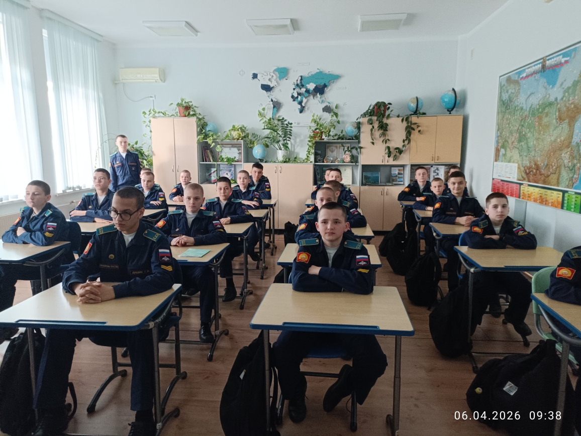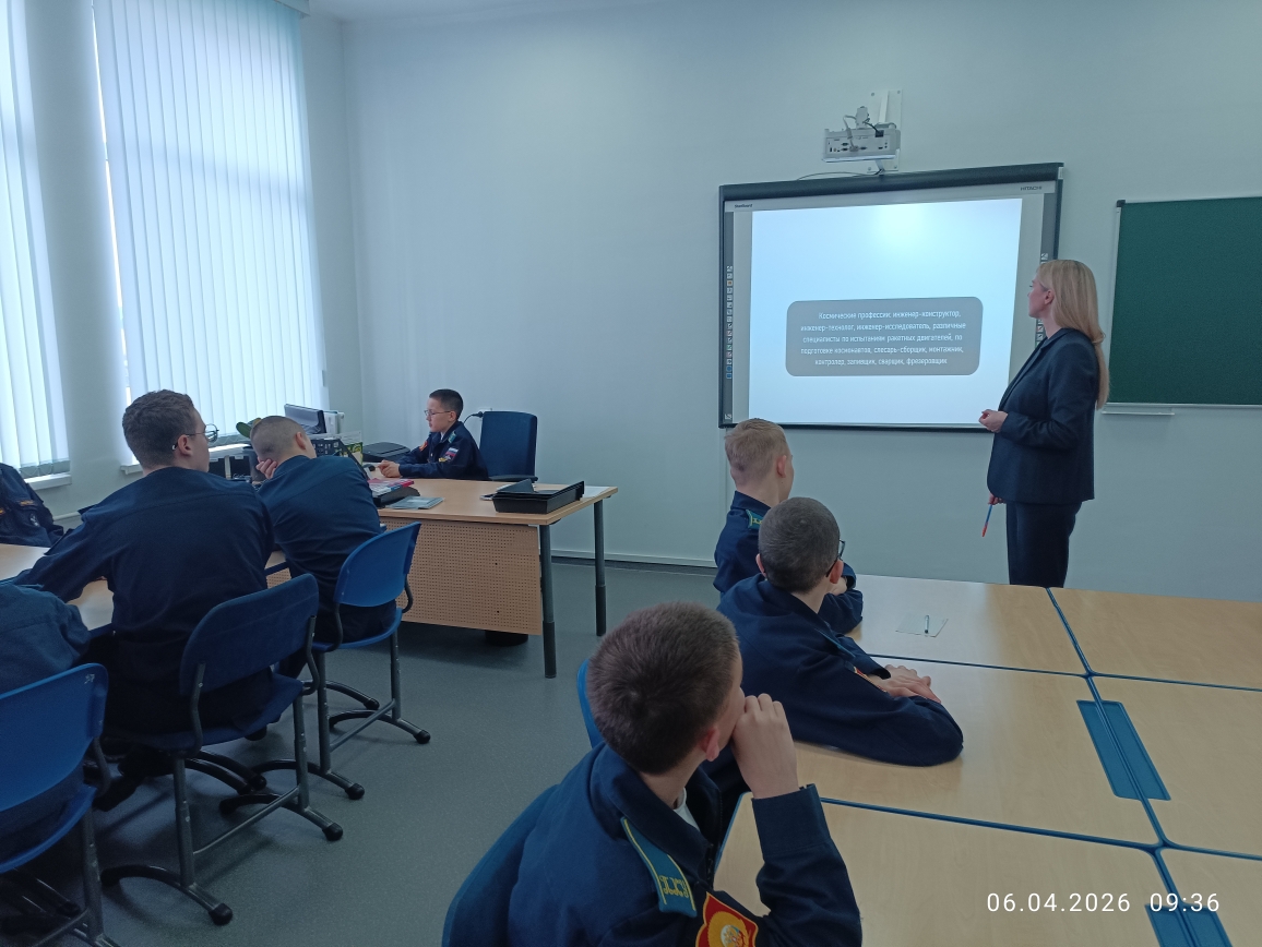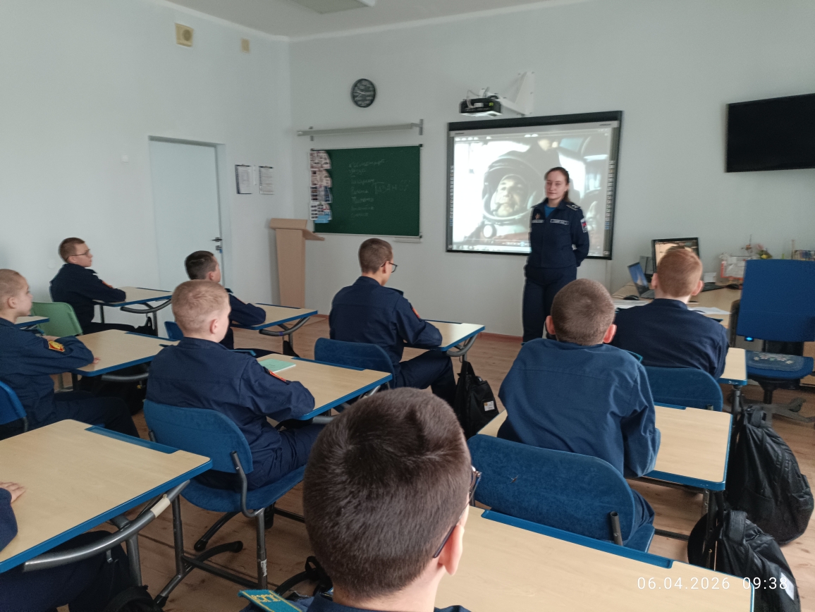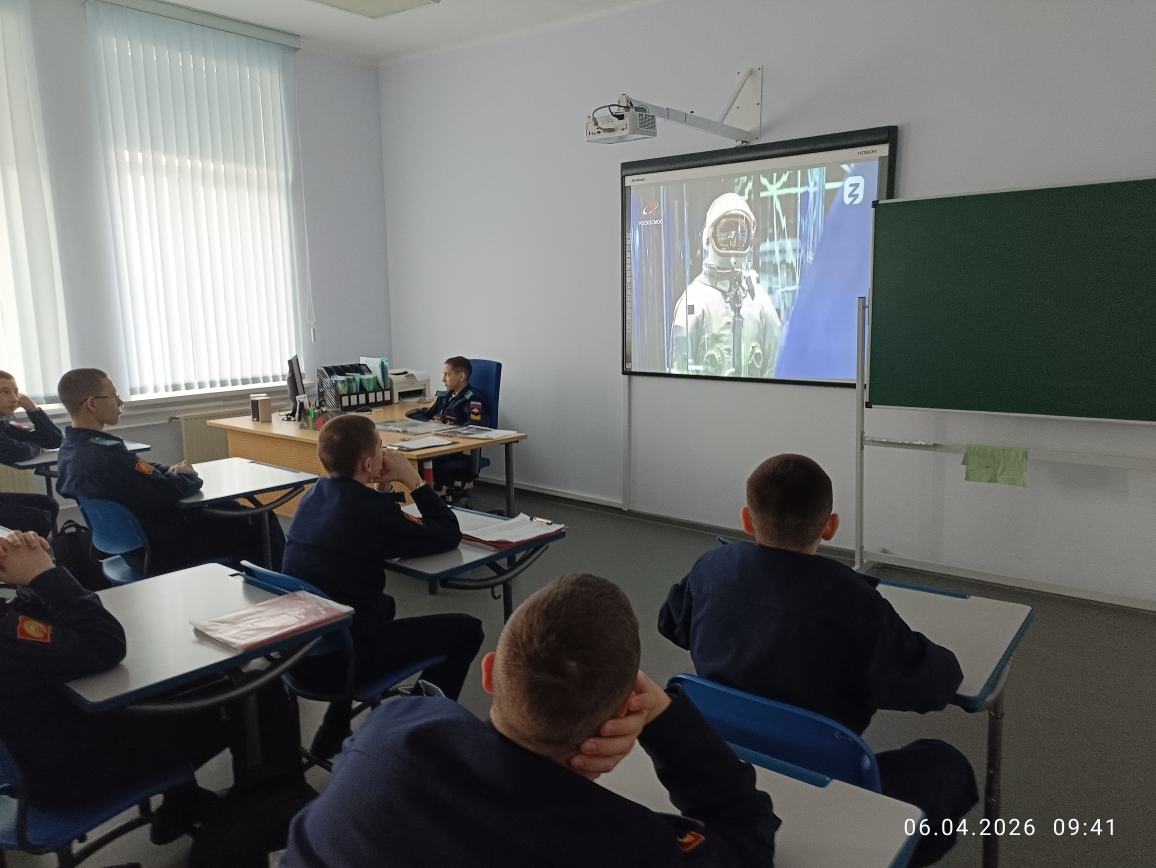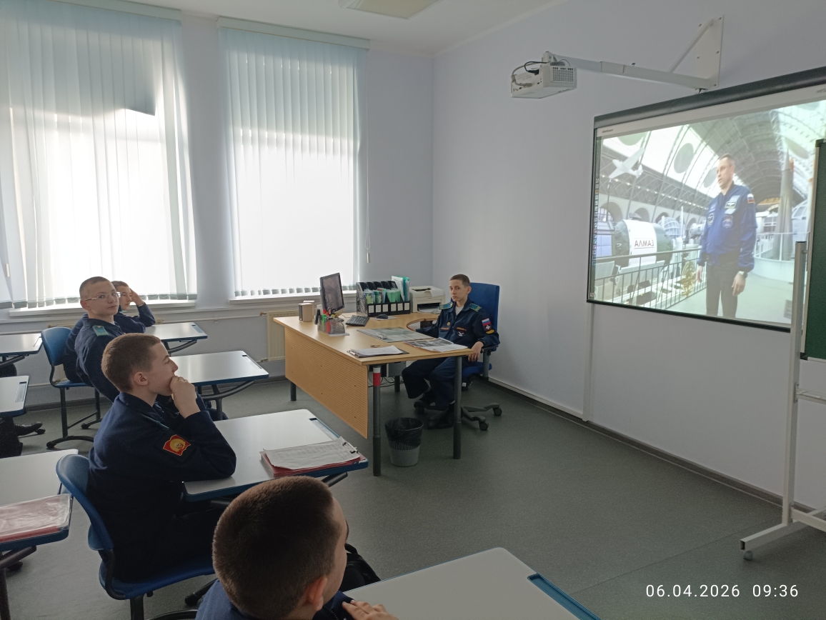 6 апреля в рамках «Недели КОСМОСА» кадеты 7 учебного курса в учебных классах главного учебного корпуса «Разговаривали о важном». Воспитатели в каждом взводе говорили на тему: «ДЕНЬ КОСМОНАВТИКИ. МЫ ПЕРВЫЕ!» Эта познавательная беседа-занятие включала в себя использование видеороликов, интерактивных и презентационных материалов, а также анализ визуальной информации и участие в интеллектуальной игре по теме занятия. Вспомнили и о вкладе Российской Федерации в развитие аэрокосмической отрасли и познакомить с важными фактами, связанными с космосом и работой на Международной космической станции (МКС), а также с перспективами развития аэрокосмической отрасли страны.