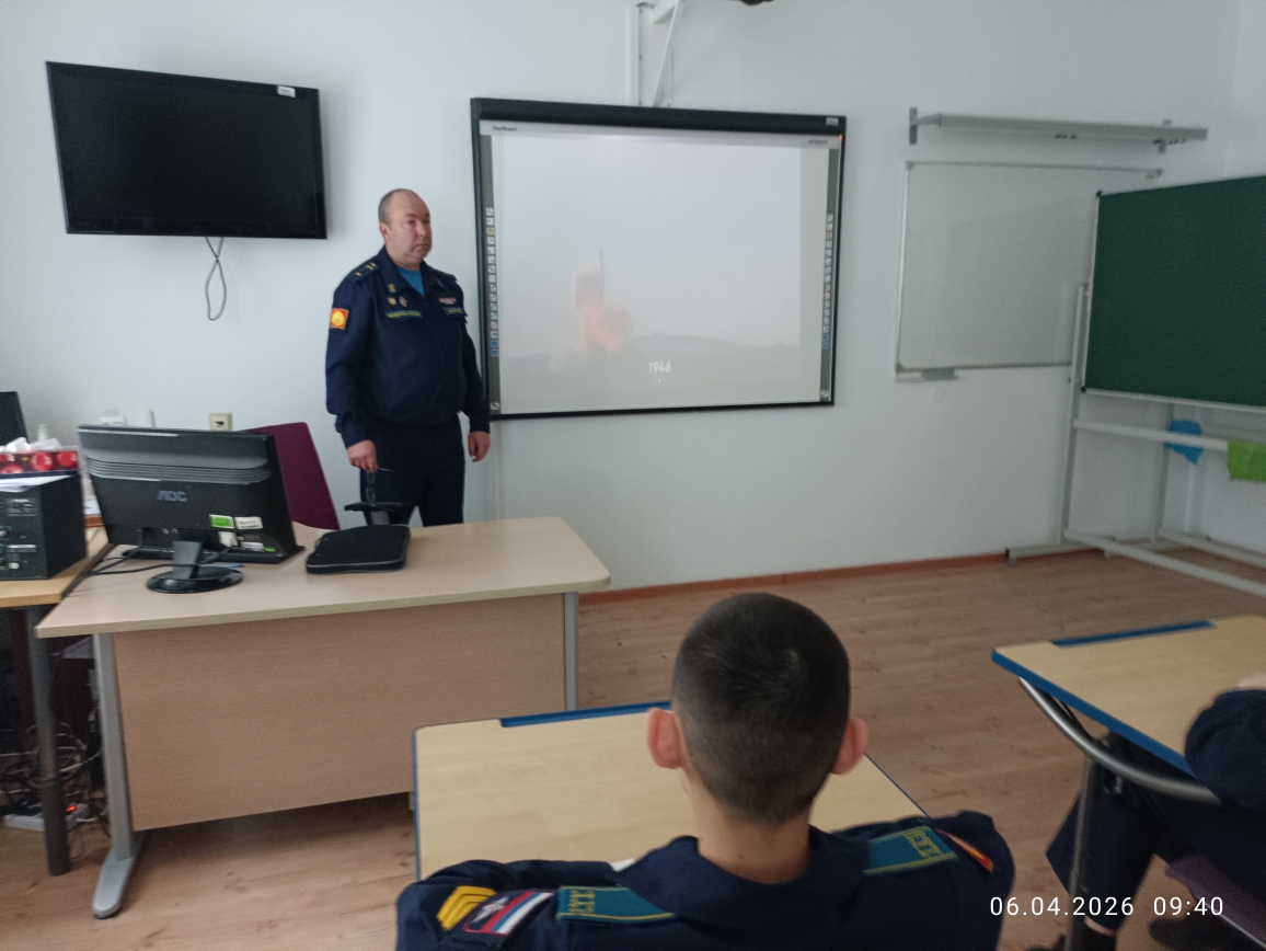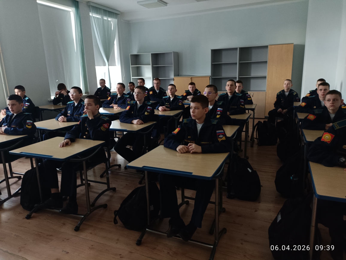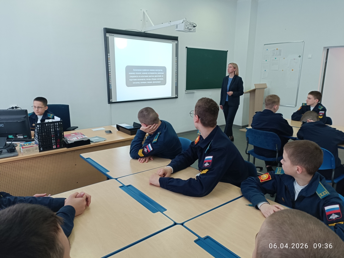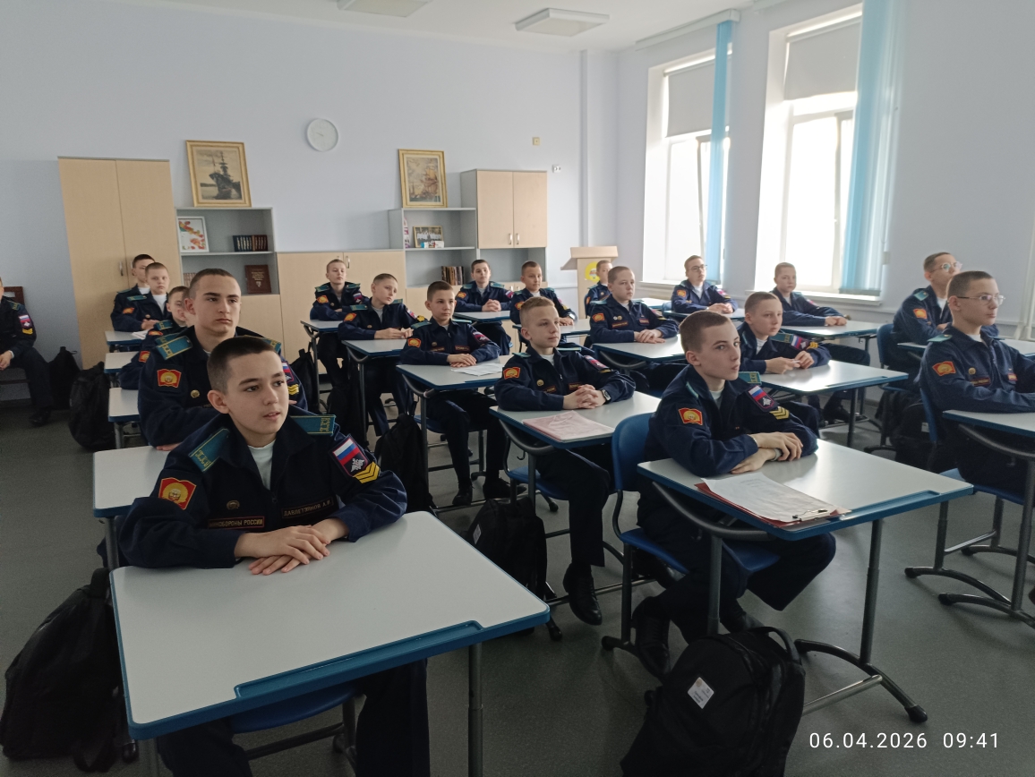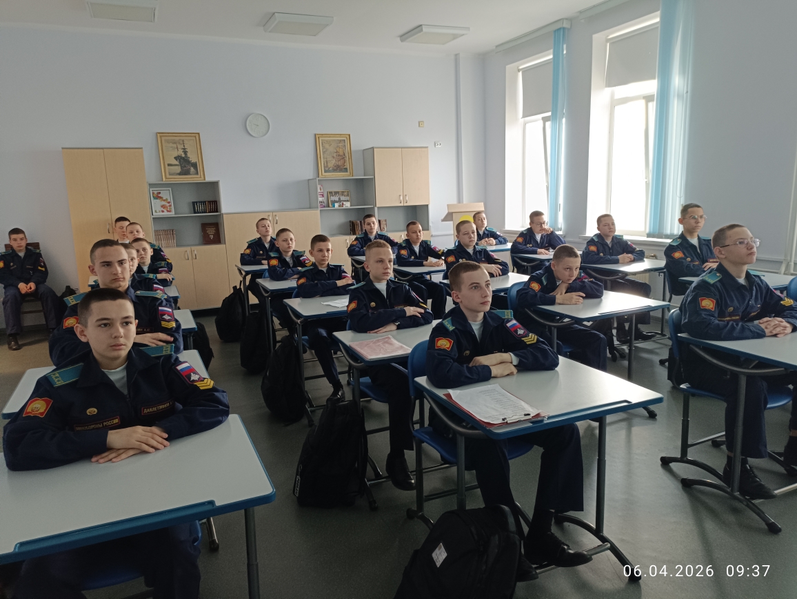 6 апреля в рамках «Недели КОСМОСА» кадеты 7 учебного курса в учебных классах главного учебного корпуса «Разговаривали о важном». Воспитатели в каждом взводе говорили на тему: «ДЕНЬ КОСМОНАВТИКИ. МЫ ПЕРВЫЕ!» Эта познавательная беседа-занятие включала в себя использование видеороликов, интерактивных и презентационных материалов, а также анализ визуальной информации и участие в интеллектуальной игре по теме занятия. Вспомнили и о вкладе Российской Федерации в развитие аэрокосмической отрасли и познакомить с важными фактами, связанными с космосом и работой на Международной космической станции (МКС), а также с перспективами развития аэрокосмической отрасли страны.